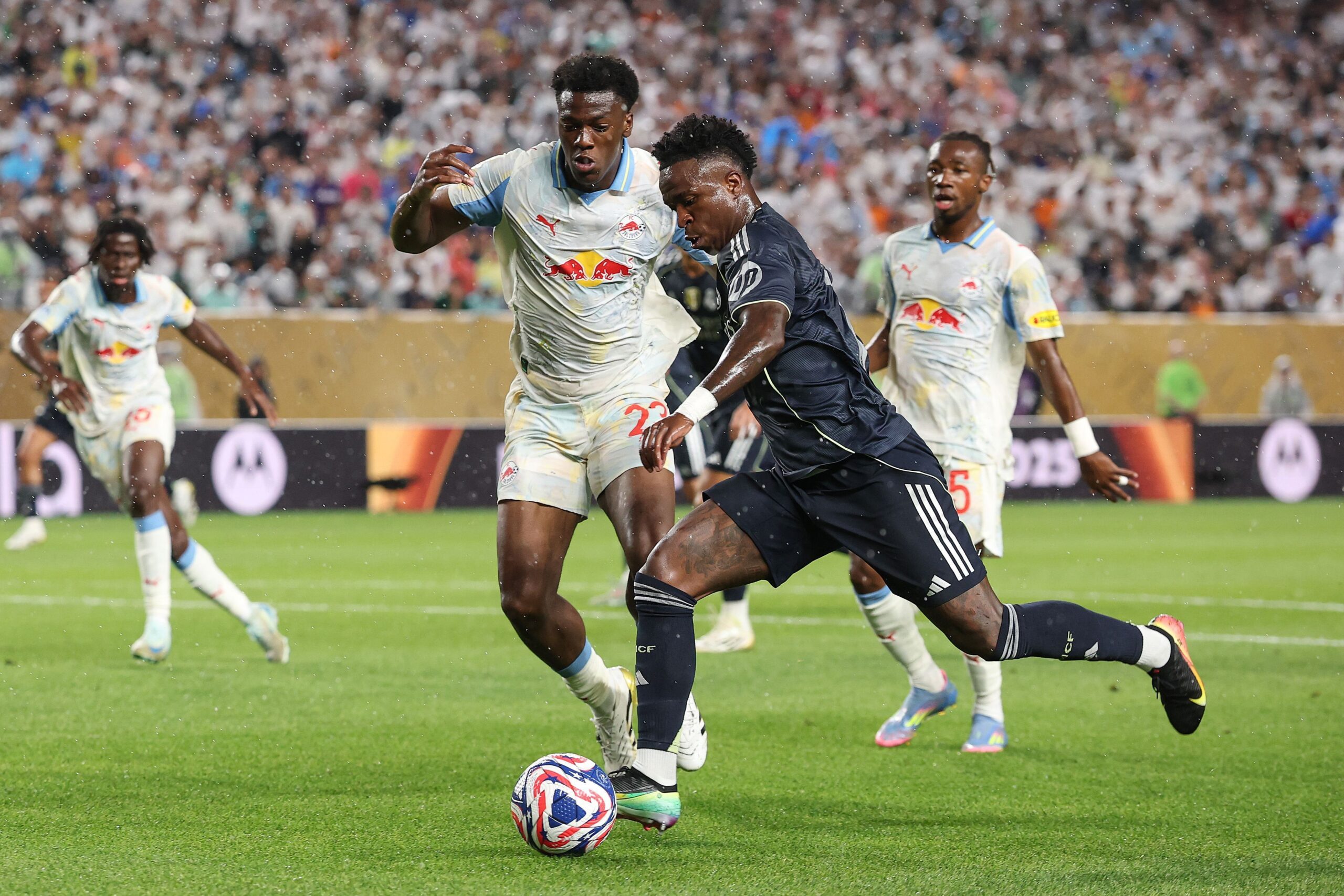 O jogo entre Real Madrid e RB Salzburg surpreendeu por um motivo inusitado. Em meio a tantas paralisações por ameaça de chuva, o duelo não foi interrompido, mesmo em meio a tempestade na Filadélfia.