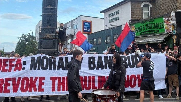 Sem aceitar a decisão da Uefa, torcedores do Crystal Palace foram às ruas para protestar e exigir a reversão da medida.